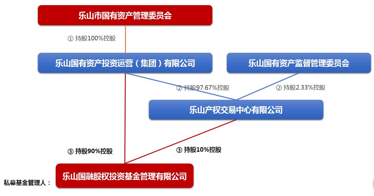 (3)“乐山国融股权投资基金管理有限公司”由“乐山国有资产投资运营(集团)有限公司”和“乐山产权交易中心有限公司”控股,分别持股是90%和10% 。从上图可知,“乐山市国有资产管理委员会” 间接控制“乐山国融股权投资基金管理有限公司”,能够实际支配乐山国融股权的企业行为,因此“乐山市国有资产管理委员会”为实际控制人。