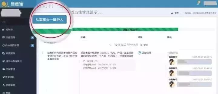 3. 两大合规系统 打通募集宝与自查两大系统,一键导入自查系统,智能完成自查