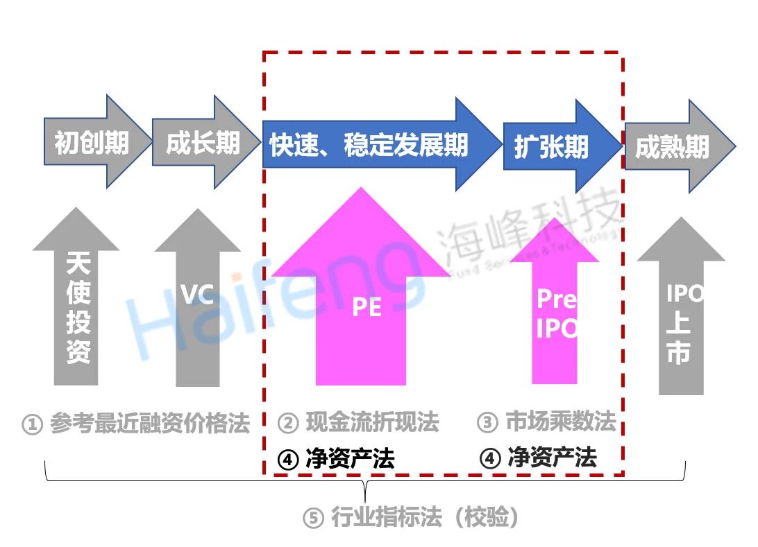 上文我们提到,按照企业生命周期理论,处于不同生命周期阶段,企业创造价值的因素不同,企用使用的估值方法不一。而“净资产法”多在企业快速、成熟发展期和扩张期估值时被采用。